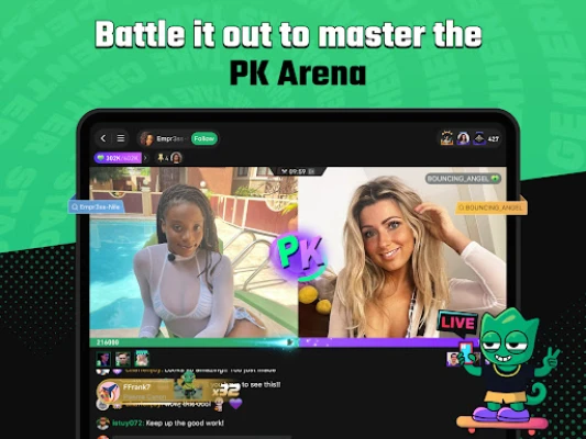 Canlı yayına yeni bir boyut getiriyoruz. Mücevher kazanın, puan toplayın, büyü alın, Hazine Kutusu kazanın. Sohbet odamız ve abone avantajlarımız sayesinde, hem çevrim içi hem de çevrim dışı olarak tüm yayın ve görüntüleme deneyimine yeni bir boyut kazandırmak için hazırız. Daha fazla etkileşim istiyorsan kolaylıkla sahip olabilirsin.