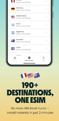 Tüm seyahatleriniz için ihtiyacınız olan tek eSIM çözümü. Bir kez yükleyin ve 200'den fazla destinasyon ve bölgede veri planlarına erişin! Artık eSIM değişimi yok, sadece anında ve güvenilir bağlantı ile endişesiz keşifler. Buna Truely Switchless™ diyoruz.