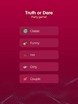 Get ready for the most thrilling Truth or Dare game! Perfect for parties, gatherings, or just a fun night in. Our app brings you an endless array of questions and dares to keep the excitement alive. Choose from a variety of categories to match the vibe of your group.
