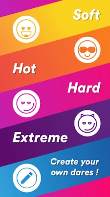 The dares are arranged into 5 levels: Fun, Soft Hot, Hard and Extreme! Which truth or dare difficulty will you choose?