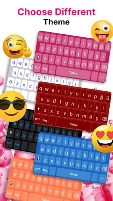 Emoji keyboard have more than 1000 fantastic emojis such as love emoji,happy faces, heart emoji and many more in Turkey Keyboard by which you can share your emotions with your love one through whatsapp ,facebook,text sms etc .You can customize your keyboard by an amazing colorful backgrounds and cool fonts.