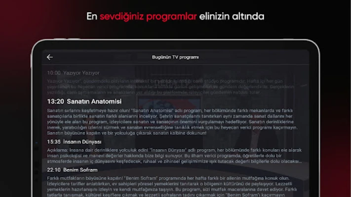 Canlı tv, tv izle, dizi izleme programı ve maç izleme programı ücretsiz seçenekleri ile televizyon keyfini her yerde yaşatan tv uygulaması. Tüm tv kanalları canlı izle, ulusal tv kanalları, yerel tv kanalları, tv kanalları yükle hepsi ve yayın akışı tek uygulamada sunulur. Tv izle bütün kanallar internetsiz canlı ücretsiz özelliği sayesinde hd tv izle butun kanallar seçeneği ile internet olmadan da izleme yapılabilir. Canlı tv izle hd tüm dunya kanalları ve canlı türk tv kanalları ile hem Türkiye hem de dünya yayınları elinizin altında olur.