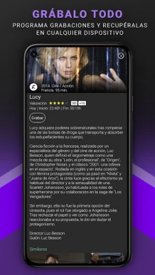 • Grabaciones: puedes realizar y programar las grabaciones de cualquier programa, película o serie que mas te gusta; y verla cuando quieras, tantas veces como quieras.