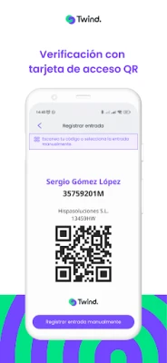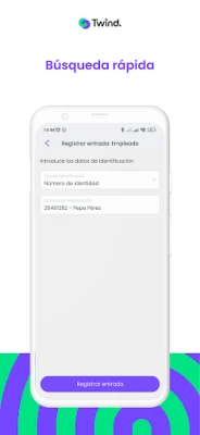 Accede a la información del personal externo incluso sin conexión a internet. Twind obtiene periódicamente la información de nuestros servidores y la guarda en su memoria para que puedas verificarla en modo offline.