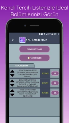 Tercih Robotu sayesinde istediğiniz bölümü kazanma şansınızı hesaplayabilirsiniz! Tercih edeceğiniz bölümleri tek bir liste halinde görebilirsiniz. Puanınıza uygun en yüksek bölümlerin listesini bulabilirsiniz.