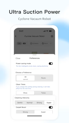 By downloading and installing U Vacuum, you will be able to remotely control and track the working status of the V10 anytime, anywhere. With just one click, you can activate a super strong suction mode up to 10 times higher or customize various cleaning plans. Whether it's setting up cleaning restricted areas, virtual walls, achieving selective area cleaning, freely dividing cleaning areas, or even flexibly adjusting the cleaning sequence, everything can be done as you wish to meet the different cleaning needs of various functional areas in your home.