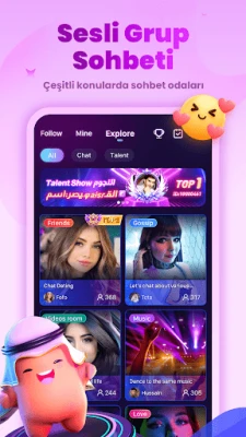 Grup sesli sohbetlerine katılın ve eğlenceli bir sesli parti başlatarak yeni arkadaşlarla keyifli vakit geçirin.