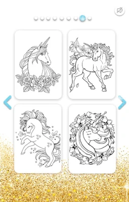 ⭐ Unicorn Coloring Book Glitter is very easy to use and absolutely FREE: no paid content, all for FREE!