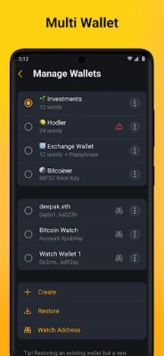 - Non-Custodial Multi-wallet >> Manage any number of cryptocurrencies across multiple portfolio-style wallets in a non-custodial manner. This wallet is like your own bank where you are the only client and the only one in charge. It’s designed to keep assets secure and easy to restore even if the phone is stolen and tampered with.