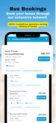 - Buses: Easily book bus tickets at preferred rates and routes across India.