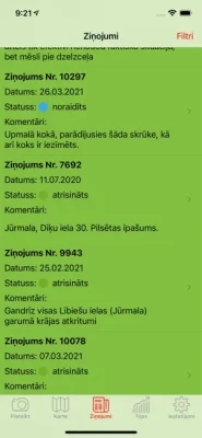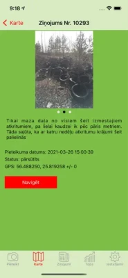 Šī aplikācija izveidota, lai Tu ātri varētu paziņot Valsts vides dienestam par pārkāpumiem pret vidi.Valsts vides dienests izvērtēs tavu ziņojumu un pieņems risināšanai vai pārsūtīs to attiecīgajai pašvaldībai vai citai iestādei, kuras kompetencē ir ziņotās problēmas novēršana.Ja, iesniedzot ziņojumu, būsi norādījis e-pastu, saņemsi tajā informāciju par ziņojuma gaitu.