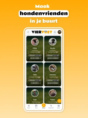 Ontdek welke honden en baasjes er bij jou in de buurt wonen en wie graag samen wandelt of speelt. Je legt laagdrempelig contact via de chat en jij bepaalt of je later persoonlijke gegevens zoals je telefoonnummer deelt, of dat je het prettig vindt om lekker binnen Viervoet te blijven chatten.
