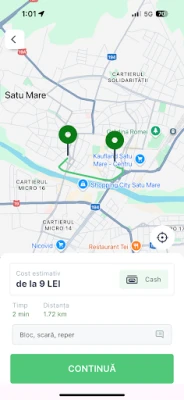 - Vezi dinainte tariful aproximativ, distanța și timpul estimat până la sosirea mașinii.