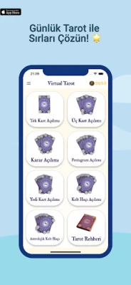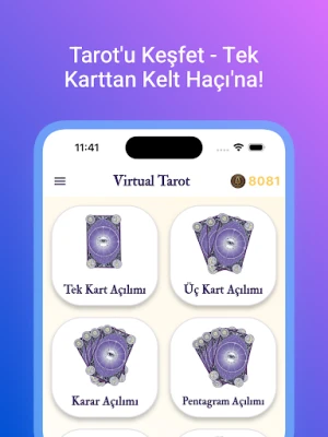 Modern hayatın hızlı temposunda kendinize ayıracak bir an mı arıyorsunuz? Virtual Tarot, tarotun yüzlerce yıllık kadim semboller dünyasını ve arketiplerin gücünü, modern teknolojiyle birleştiren bir farkındalık ve kişisel keşif rehberidir. Bu uygulama, size geleceği göstermeyi vaat etmez; bunun yerine, şu anki düşüncelerinizi, duygularınızı ve potansiyelinizi daha net görebilmeniz için size ayna tutar.