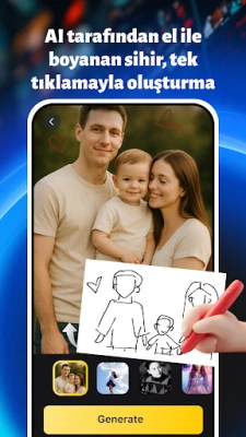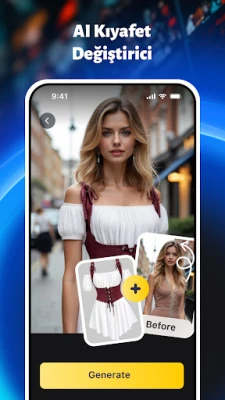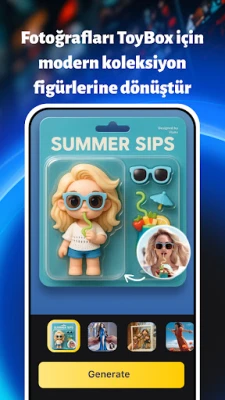 AI Görüntü Generator: Videoların yanı sıra, Viyou ile AI görüntüler, portreler ve avatarlar tek dokunuşla üretilebilir. Profil fotoğrafları veya yaratıcı projeler için idealdir.