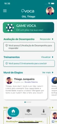 Utilidades do VOCA: Feedbacks constantes e comunicação positiva Extrair insatisfações silenciosas Mensurar clima interno em tempo real Rede social corporativa Desenvolver lideranças Alinhar aos objetivos da empresa Facilitar decisões rápidas Fomentar a inovação