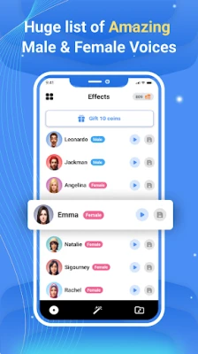 - AI-Driven Effects: Enjoy a diverse array of realistic voice transformations including male to female, female to male, celebrities, cartoon, anime... powered by sophisticated AI algorithms.