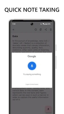 To convert speech to text, Voice Notes uses Google's speech recognition service. Therefore, the Google app must be installed for voice input to work.