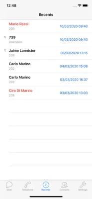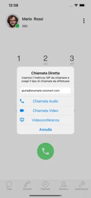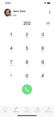 - vedere quando i tuoi contatti aziendali sono disponibili, - inviare e ricevere messaggi istantanei attraverso il servizio integrato di messaggistica (Chat), - utilizzare la rubrica locale e quella aziendale integrata nel centralino senza doverla scaricare sul dispositivo - effettuare e ricevere chiamate VoIP, sia audio sia video - consultare il registro chiamate