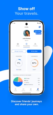 • Travel stats — track countries visited, trip counts, and milestones