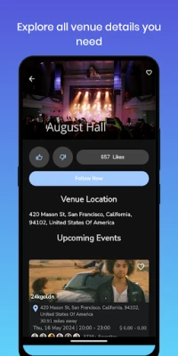 Discover Events: Browse through a curated list of upcoming events based on your location and preferences.