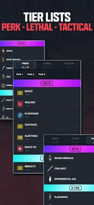🔫 LOADOUTS: OPTIMIZE YOUR ARSENAL Ultimate Meta provides you with unique loadouts for each weapon across all three games. Whether you are a sniper or a front-line fighter, we offer detailed loadout recommendations tailored to your preferred playstyle. Command the battlefield like never before. 🔥
