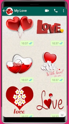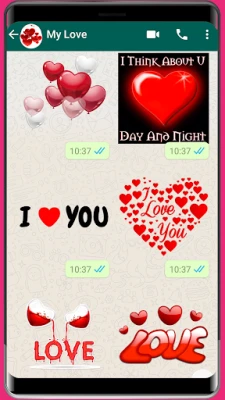 WASticker için çıkartmalar kullanın ve sohbetinize aşk çıkartmaları, romantik çıkartmalar, kalp çıkartmaları ve Seni Seviyorum çıkartmaları ekleyin.
