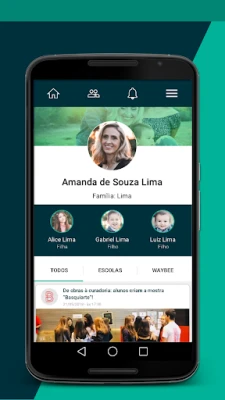 - Fila virtual: aviso de chegada na escola para buscar os filhos via aplicativo
