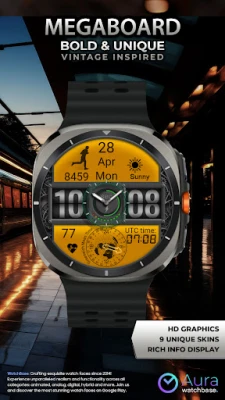 Prepare for a WearOS watch face that's both cutting-edge and nostalgic. MegaBoard takes the unmistakable look of vintage train departure boards and injects it with modern smartwatch smarts. The result is a bold, memorable, and instantly recognizable design that demands attention.