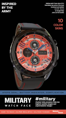 A new unique blend between design and functionality, a military themed SUPER realistic analog watch face for Wear OS.
