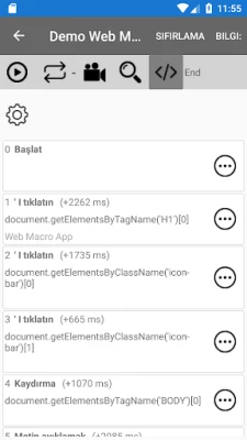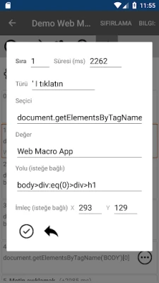 Makro olayları Javascript olarak yakalanır (html biçimlendirme / css stili / ajax jquery) ve kullanıcı eylemleri simüle etmek için yeniden çalınabilir.