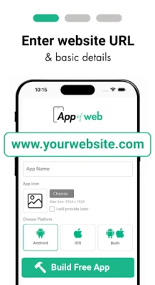 Easily convert your website into an Android or iOS app with just a few clicks. Our tool is the fastest way to turn a website into an app, generate APK, AAB, and IPA files, and launch on Google Play or App Store — all without coding.