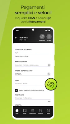 Con Webank potrai pagare comodamente dall’app CBILL-pagoPA, MAV/RAV, bollo auto e bollettini postali, ti basta inquadrare il QR Code per acquisire i dati. Inoltre, catturi il codice IBAN del bonifico con la fotocamera.