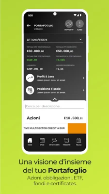 Tieni sotto controllo, gestisci i risparmi e inserisci ordini di borsa. In più, grazie all’area Fondi & SICAV trovi la soluzione giusta per te fra oltre 4.000 Fondi delle migliori Case di Gestione. Crea un Portafoglio simulato per imparare a gestire i tuoi investimenti e cogliere tutte le opportunità del mercato acquistando titoli con il trading online in qualsiasi momento.