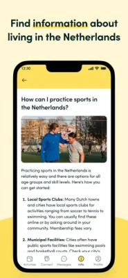 Find useful information about life in the Netherlands easily in the app, from Dutch culture to job searches.