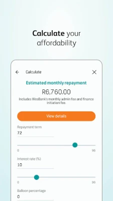 The WesBank App is a complete, end to end vehicle finance platform. It allows our customers the ability to easily apply and check for vehicle finance, customise their deals, manage them accordingly and sign their finance contracts all under one app.