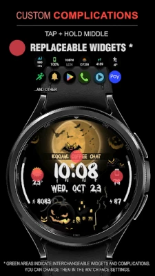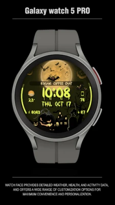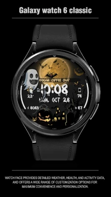 The WFP 315 Halloween watch face is not only stylish, but also very functional. It provides detailed weather, health, and activity data, and offers a wide range of customization options for maximum convenience and personalization.