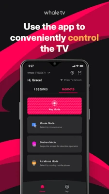 Connect to your Whale TV! Quickly log in to your TV and use practical operations such as screen mirroring, virtual remote control, etc.