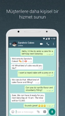WhatsApp Messenger'da bulunan özelliklere ek olarak, WhatsApp Business bunları içerir: