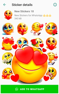 Yüzlerce sevimli ve eğlenceli çıkartma içeren bu ücretsiz yeni çıkartma paketlerinin gülen WAStickerApps'in tadını çıkarın! Romantik aşk emojisi, güzel kalp çıkartmaları gönderin, mutlu yıllar ve güzel çiçekler için dilekler gönderin. Ayrıca aşıklar, öpücükler ve daha fazlası için çiftler için çıkartmalar bulacaksınız. Sohbette arkadaşlarınıza tüm duygularınızı ifade etmek için WAStickerApps Memoji çıkartmalarında yüzlerinizi bulun.
