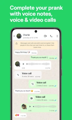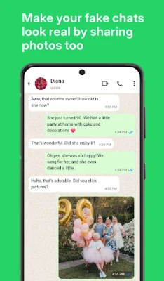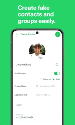 Total customization for fake WhatsApp chats, prank call logs, and fake status updates.
