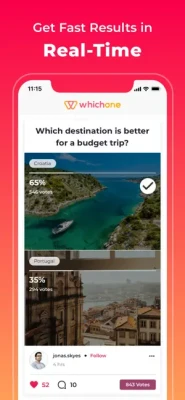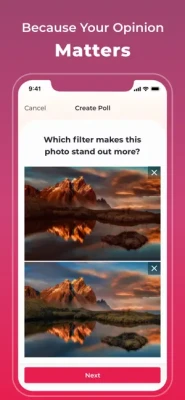 As you’re scrolling through all of the incredible, user-generated polls, we’re certain you’ll come across ones that’ll catch your eye! Voting is simple: You simply tap on the image option you choose and we’ll show you a breakdown of what other people have chosen for you to compare! Our interface is designed in a way so you can vote on the things that matter to you and simply scroll past the polls you’re not interested in. After all, your opinion matters. Why not voice it?