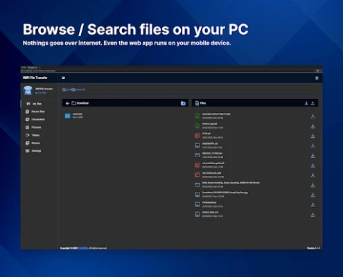 WiFi file manager is the easiest way to access your files on your Android phones via WiFi on any device at home.