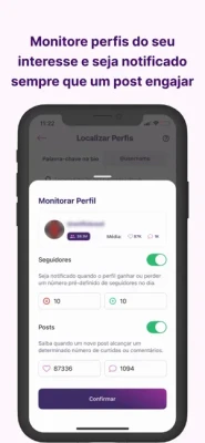 Receba notificações quando um perfil atingir marcos de seguidores, curtidas ou comentários.