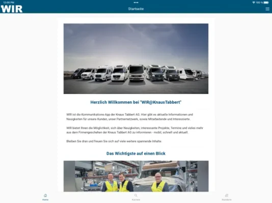 WIR bietet Ihnen die Möglichkeit, sich über Neuigkeiten, interessante Projekte, Termine und vieles mehr aus dem Firmengeschehen der Knaus Tabbert AG zu informieren - mobil, schnell und aktuell.