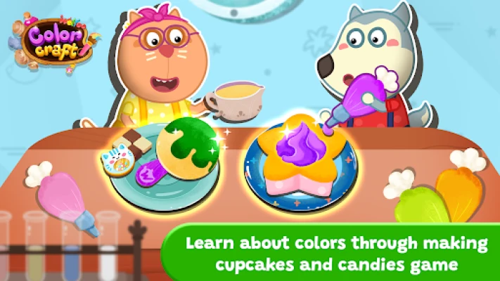 🦄With Wolfoo Learn Craft: Color Shop, your baby will experience fun educational learning games and explore Wolfoo's color shop with fun activities such as baking, candy making, finding colors, making necklace, fix pixie fairy wings, coloring, mix and match color... With our game, children can also enjoy preschool learning and improve preschool English skills. The preschool learning games are free and engaging, allowing children to learn while having fun. Wolfoo Learn Craft: Color Shop helps develop children's creativity, concentration, hand-eye coordination, cognition. In addition to learning in kindergarten, your baby will know more about how to make cute DIY crafts according to their interests.