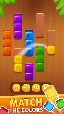 Wood Sort - Color Block Puzzle is a fun and addictive puzzle game where your objective is to sort colorful wooden blocks and arrange them in the correct order. The game starts simple, but as you progress through the levels, the challenges become more complex, requiring careful planning and strategic thinking to complete each puzzle. With unlimited levels, you'll always have a new puzzle to solve, keeping your mind engaged and entertained!