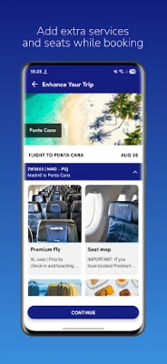 - Descarga las tarjetas de embarque móviles a tu billetera. - Consulta y selecciona tus asientos al momento de facturar.