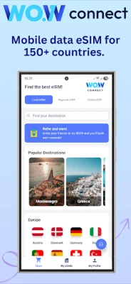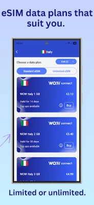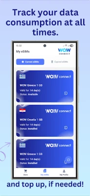 Purchase an international eSIM via the WOWconnect app.