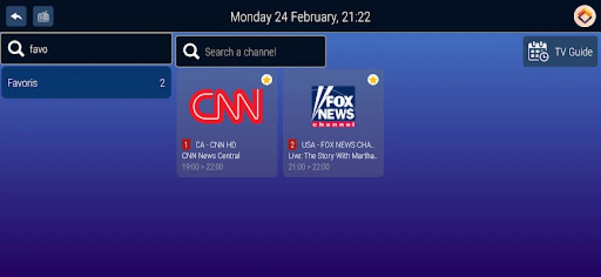 * TV guide with all programs in the selected list (recommend to use this from your favorites), option to replay if available